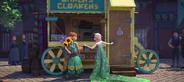 "Oaken's Cloakens and Sauna" es un establecimiento comercial propiedad de Oaken ubicado en medio del Pueblo. Hace su debut en el corto Frozen Fever. Cuando Elsa le regala una capa de girasoles a su hermana Anna siendo esta capa parte de la mercancía.
