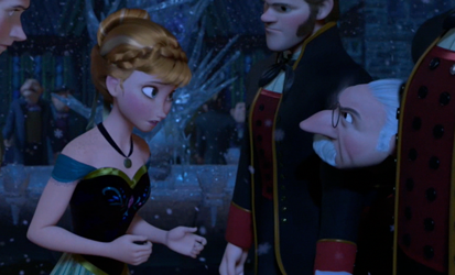 The Duke of Weselton encountered Anna at Elsa's coronation party; after the queen declined a dance, the Duke settled instead for Anna. During his dancing, he tried to pry knowledge of Arendelle's isolation from Anna, but after the princess stated that she did not know, the Duke gave up the effort. The two continued dancing for a few more moments before the Duke allowed Anna to return to Elsa's side.