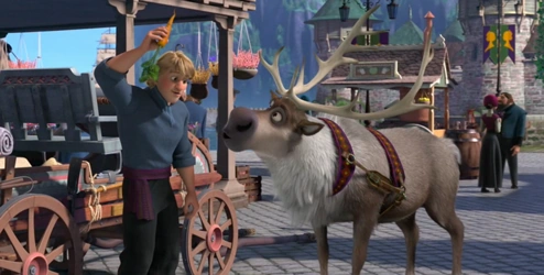 Sven and Kristoff have been good friends since childhood; even as a calf, Sven helped Kristoff with his ice harvesting endeavors, a behavior that continued into adulthood. In addition to working together, the two also dined together, going as far as sharing the same carrot.